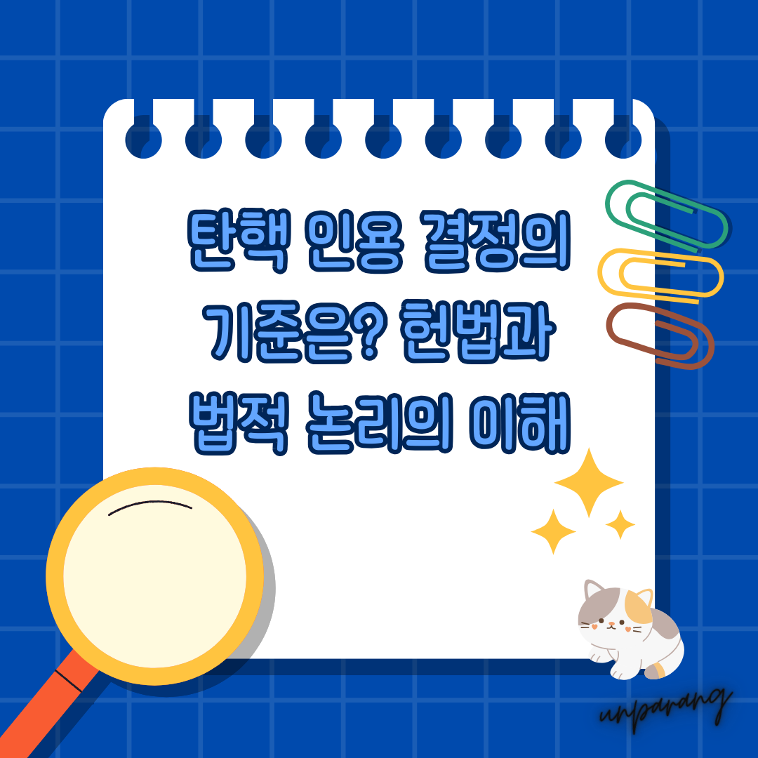 탄핵은 헌법적 질서를 수호하고 국가의 법치주의를 유지하기 위한 중요한 법적 절차입니다. 하지만 탄핵이 인용되기 위해서는 구체적인 법적 기준과 논리가 적용되어야 합니다. 본 글에서는 헌법재판소가 탄핵 인용을 결정하는 데 사용되는 기준과 그 법적 논리를 깊이 있게 탐구합니다.