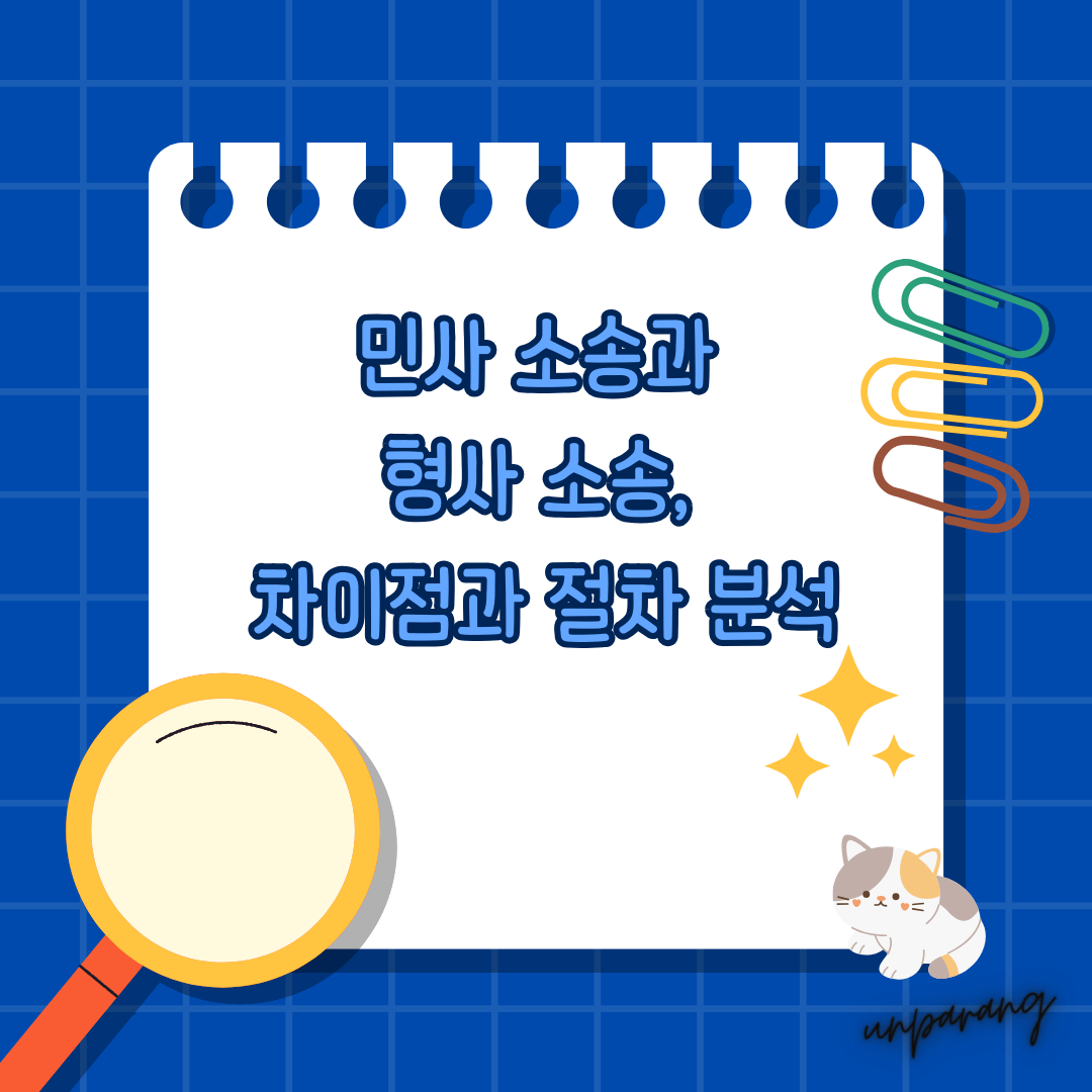 - 목적: 민사 소송은 개인 간의 분쟁 해결, 형사 소송은 범죄 처벌이 목적입니다.